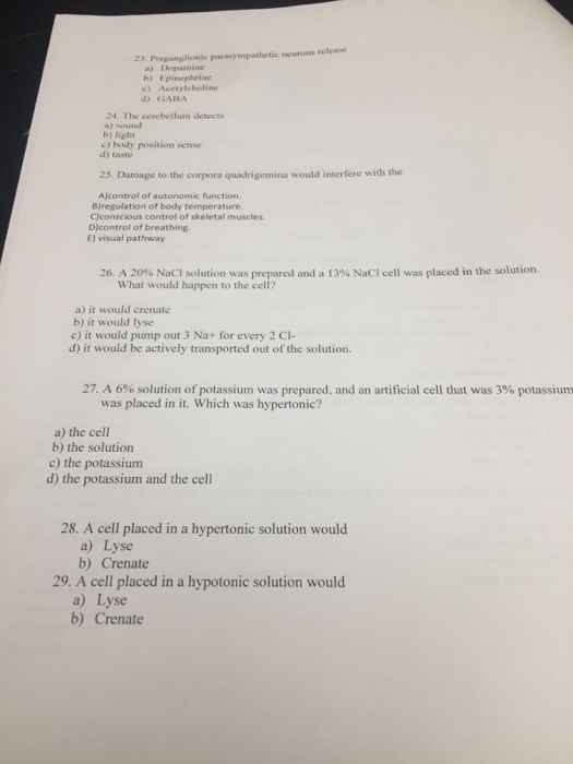 Solved: 23. Preganglionic Parasympathetic Neurons Releasse... | Chegg.com