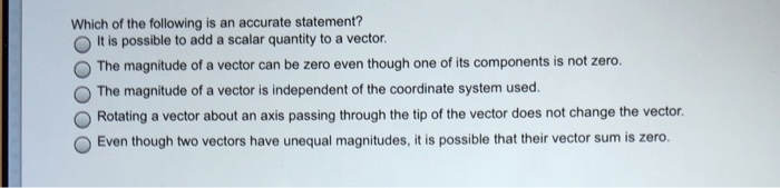 (a) adding any two scalars, (b) adding a scalar to a vector of the same dimensions , (c) multiplying any vector by any scalar, (d) multiplying any two scalars, (e. Solution for is it possible to add a scalar quantity to a vector quantity? Scalar and vector additions. Scalar quantities are very easy to add. All you have to do is convert them to the same (si)units and just add the magnitudes together. Finally, the resulting value is in terms of the same units. If a girl walks 2km north and then 4km east, the total distance will be 6 km, this is because distance is irrespective of. Is it possible to add a vector quantity to a. Is it possible to add a vector quantity to a scalar quantity?