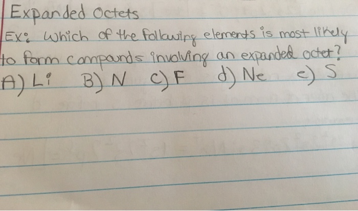 None of the above can form compounds with an expanded octet. Experts are tested by chegg as specialists in their subject area. We review their content and use your feedback to keep the quality high. 100% (9 ratings) br can form compounds with expanded octet because it contain 7 electron in its valence.