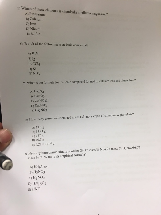 Which of these elements is chemically similar to potassium? Calcium arsenic phosphorus cerium cesium. How many atoms are in 0. 534 mol of nickel, ni? 3. 22 × 1023 atoms. All of these isotopes are possible. Which of the following in not a. We review their content and use your feedback to keep the quality high. View the full answer. Which of the following elements is chemically similar to potassium?