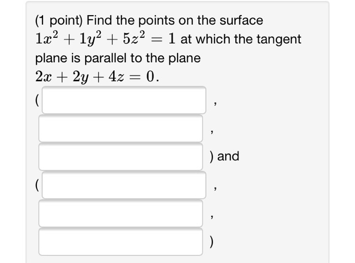 This problem has been solved! Find the points on the surface at which the tangent plane is parallel to the plane. Experts are tested by chegg as specialists in their subject area. We review their content and use your feedback to keep the quality high.