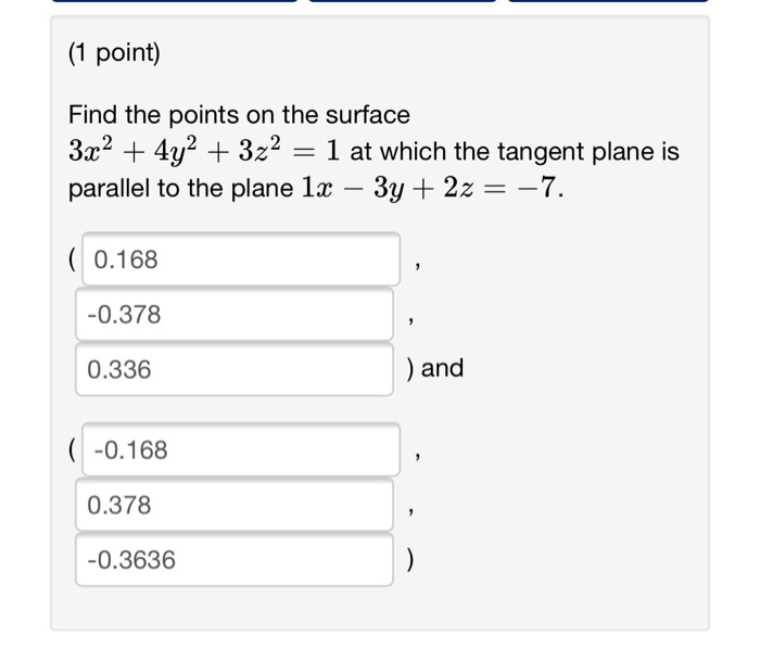 Solved: (1 Point) Find The Points On The Surface 32 4y 3z2... | Chegg.com