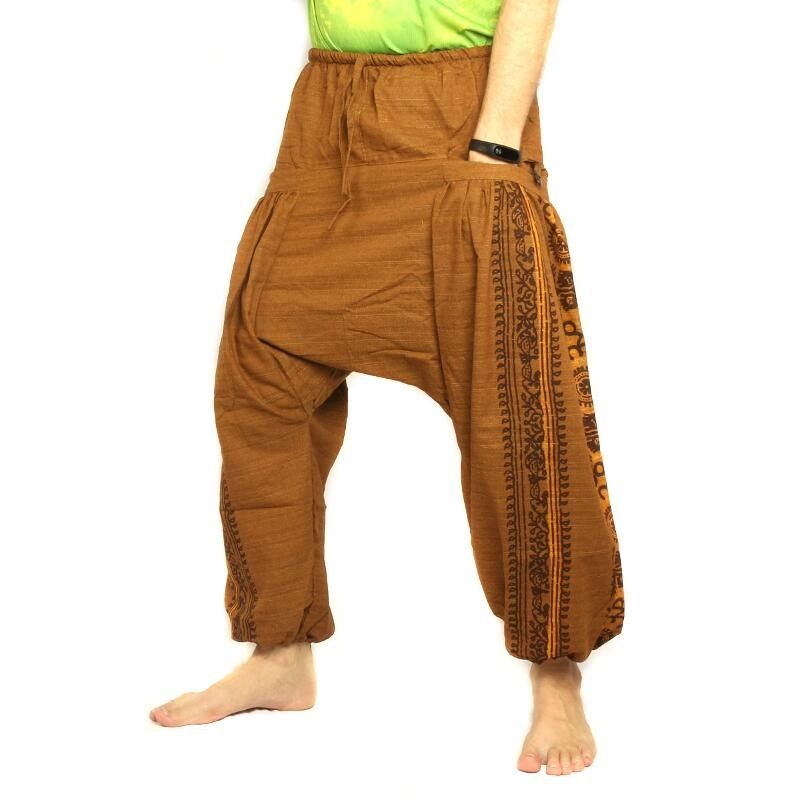 Baggy Pants with Sanskrit symbols cotton mix light brown