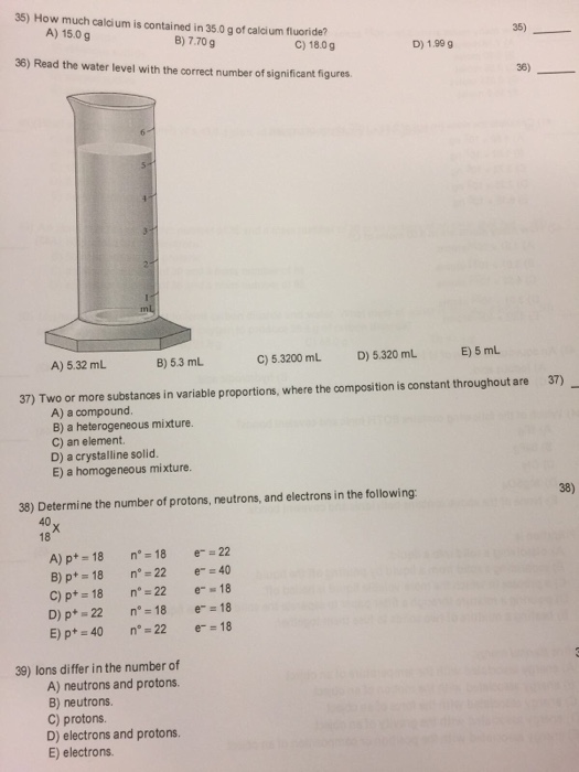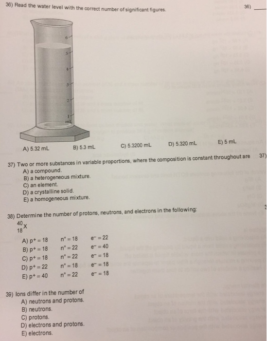 Solved: 36) Read The Water Level With The Correct Number O... | Chegg.com
